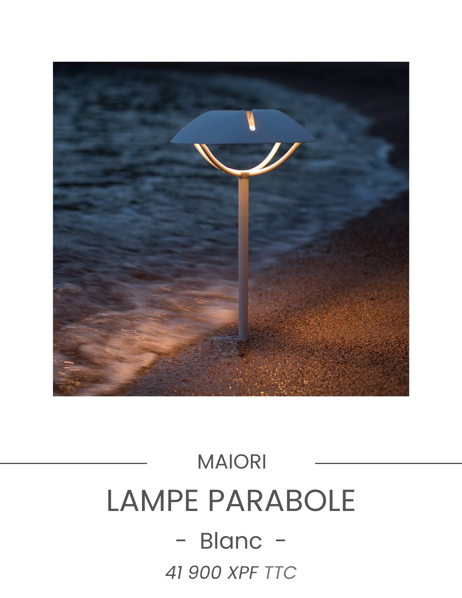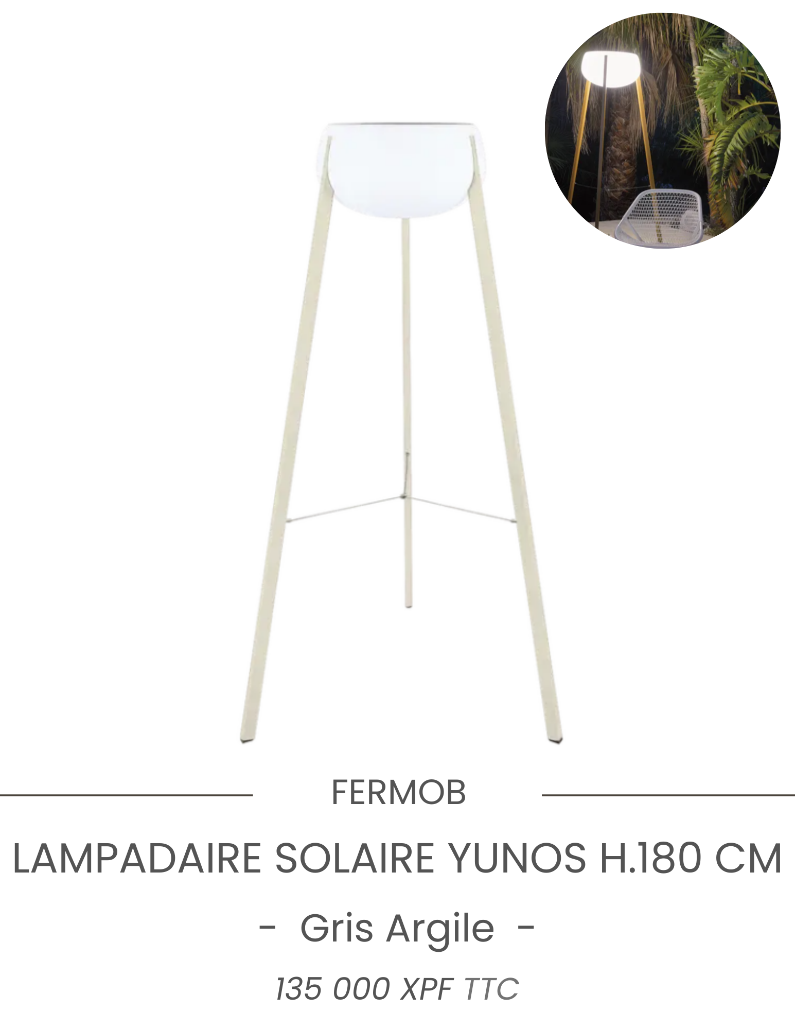 Découvrez notre sélection exclusive de mobilier et luminaires extérieurs haut de gamme, disponibles immédiatement sur Tahiti. Que vous recherchiez des lampes élégantes, des parasols raffinés ou des chaises confortables, notre stock local vous permet de profiter rapidement de vos nouveaux aménagements. Commandez aujourd’hui, et transformez votre extérieur dès demain !